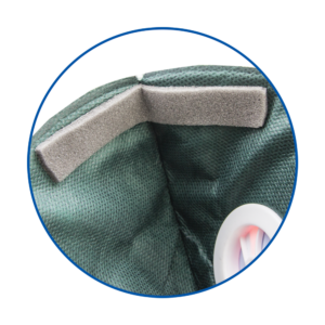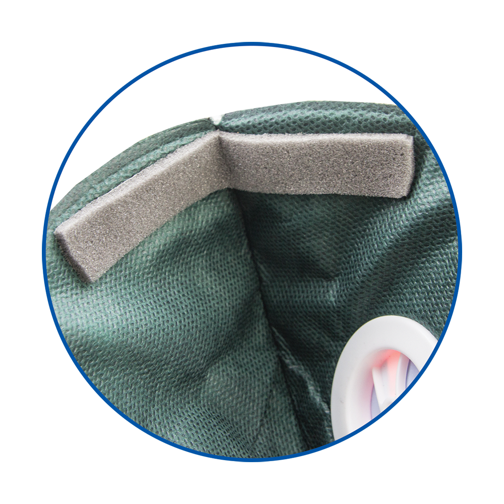 - Double, easy adjustable head bands, without latex, sewed outside filter area